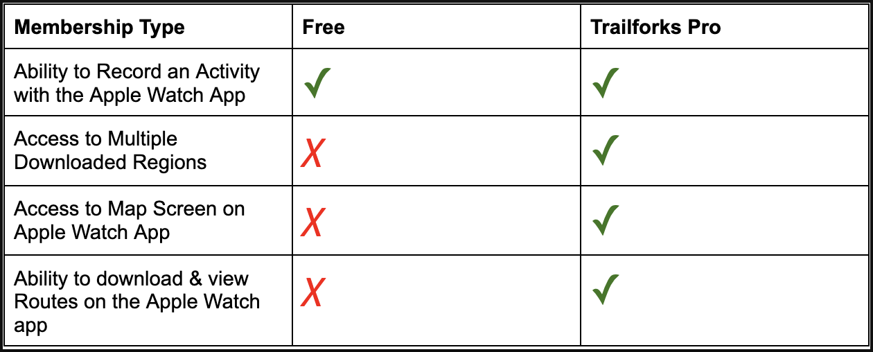As a paid Trailforks Pro user, you have access to download multiple regions and can view the map screen on the Apple Watch app. With Trailforks Pro, you are also able to add Traildar and Waypoints via the map screen, and you can view and select previously downloaded Routes on the Apple Watch app. As a free Trailforks user, you are able to download 1 free region on the Trailforks iOS app, but you are blocked from viewing & interacting with the map screen on the Apple Watch app.