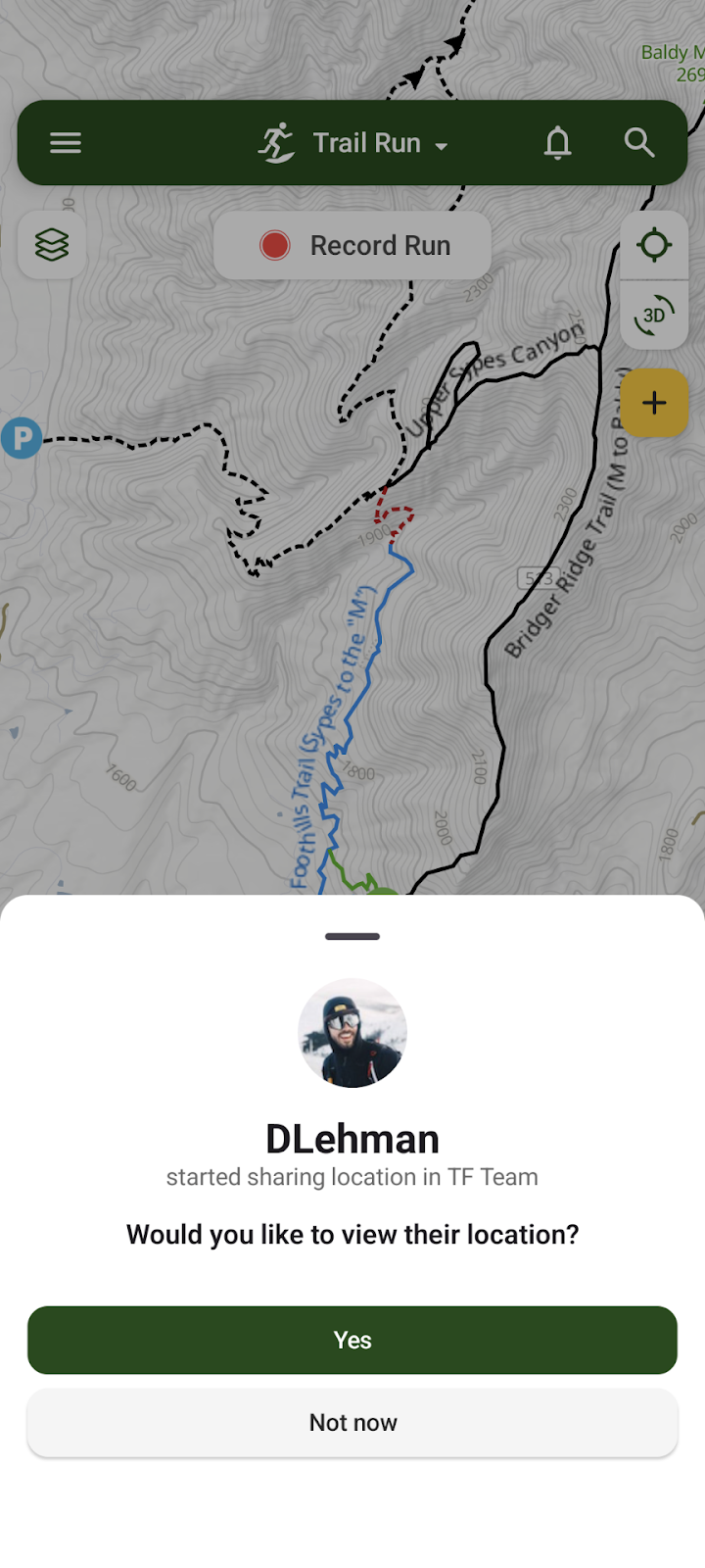 Tapping on ‘Yes’ will place the user’s profile on your main map screen. You can tap on the user’s profile picture to view more stats about their location and activity.