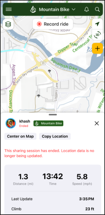 Copy Location: copies the rider’s live location to your clipboard; this can be helpful if your friend has gotten injured and you need to send their location details to a rescue team.
