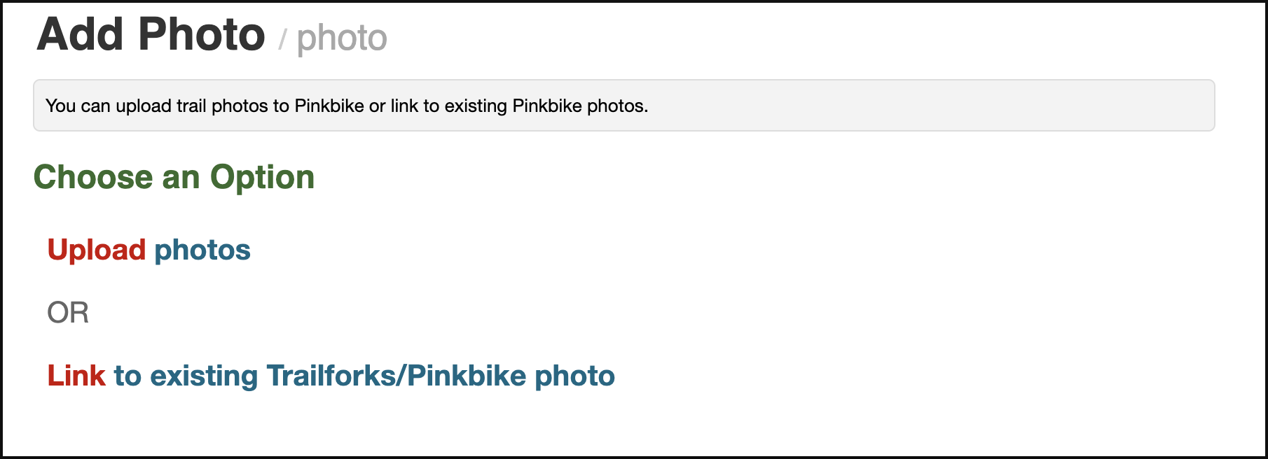 On the Trailforks web-page for the point of interest (POI), click 'add photo.'