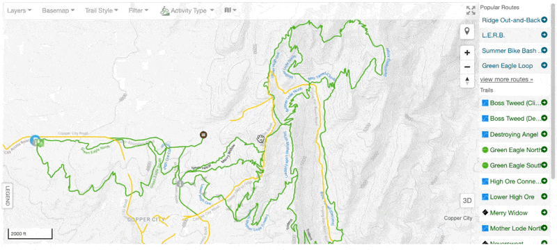 This can be especially helpful in the wintertime; if you know that there is a certain snow-level depth while riding, you can select the specific snow-level, and all the trails above that elevation will be selected.