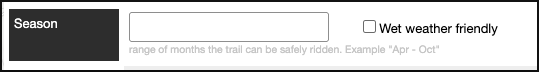 2. Under the 'Season' section, you can add the range of months that the trail can safely be ridden, or you can also mark the trail as 'Wet weather friendly.'